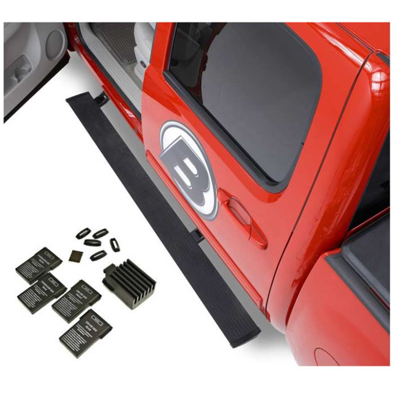 DESCRIPTION The Bestop PowerBoard NX has all the same features as PowerBoard, PLUS we've added patent pending wireless technology that greatly reduces installation time and effort. This is the evolution of powered running boards.PowerBoard NX builds on the success and continuous improvements of the original PowerBoard. NX adds patent pending Wi-Fi technology, so the board is easier and faster to install. Because of the WiFi components, PowerBoard NX installs in less time than the original PowerBoards, and for the first time, does not require any contact with the interior of the vehicle. This means no door panels, kick panels, kick plates or carpets, are touched; no cutting, splicing or tapping in to the complicated wiring harness. The PowerBoard is an automatic running board that hides underneath your truck when doors are closed and extends to meet your foot when door opens. Complete kit includes two steps, wiring harness with controller, weatherproof motors, LED light kit and hardware. The NX kit adds 4 door sensors and a receiver unit. All PowerBoards feature an integrated light kit, coated fasteners to resist corrosion and a heavy duty, weatherproof, pressure sensitive , pinch-proof technology motor to assure safety and workability for years to come. The PowerBoardNX has new Patent Pending wireless technology that makes it a whole lot smarter, and a whole lot easier to install. But thats not the entire story. Its also the end result of several years worth of continuous improvement and testing of every single component on every PowerBoard wired or WiFi. AM Bestop PowerBoard NX Wireless Running Boards FEATURES: 3-Year 36,000 Mile Warranty Opens with both front and rear door, driver and passenger 6.25" extra wide extruded aluminum step with a durable powdercoat finish Sturdy, cast aluminum arms allow step to descend up to six includes for comfortable stepping height Each PowerBoard can hold up to 600lb load capacity PER SIDE and have been climate and salt spray tested to operate in any climate Extension arm is available to provide an additional 2 inches of height for lifted trucks