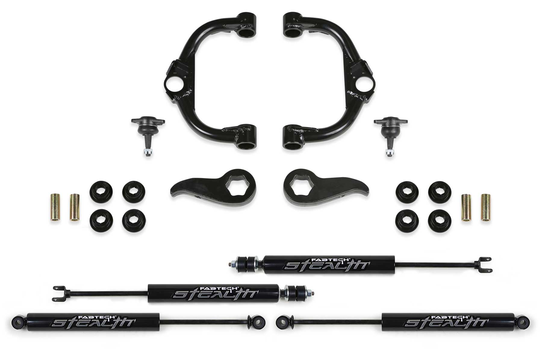 Fabtech offers their Stealth shocks with this suspension. They are a sealed monotube shock that has a Nitrocarb piston rod for corrosion resistance and resist rock chipping. They will provide a great highway ride with good offroad damping capacity.
