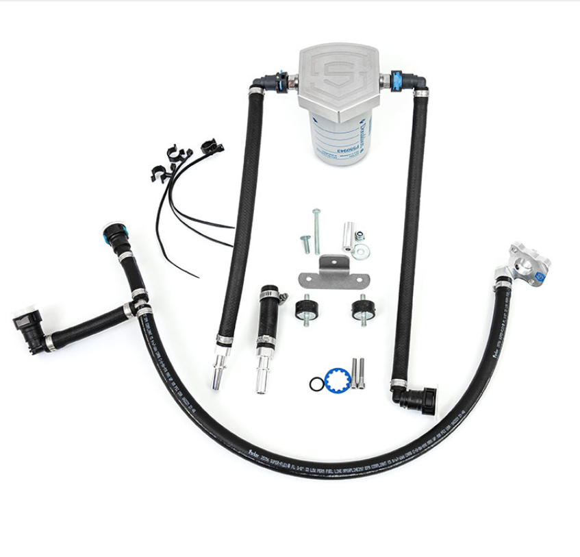 DESCRIPTION Keep the fuel system in your 2011-2022 Ford 6.7L Powerstroke protected from potential CP4 pump failure by installing the S&S Diesel CP4-6.7F-BP-G2.1 Gen2.1 CP4 Disaster Prevention Bypass Kit from XDP. Installing this kit in your truck keeps your fuel injectors, fuel rails, fuel lines, and fuel tank safe from CP4 debris in the event of the pump failing. This bypass kit features all quick connect lines that will eliminate the need for cutting the factory supply line. It also eliminates the need to use a compression fitting, which is a potential leak point. The OE-style quick-connect lines also eliminate any threaded joints that are further leak points and have the potential of generating debris during install. The Gen2.1 kit features a billet return filter head that accepts a Donaldson P550943 spin-on fuel filter which prevents debris from reaching the tank, fuel lines, and supply pump.